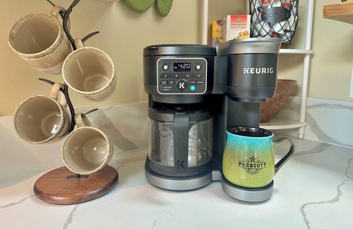 Enjoy a well appointed kitchen with everything you need, including a Keurig/drip combo with complimentary coffee and appliances like a blender and ice maker.
