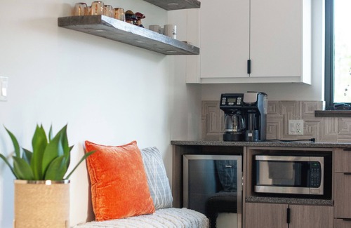 Your stay includes modern conveniences and thoughtful touches throughout. Enjoy complimentary WiFi and free parking, plus a private entrance for easy access. The property features a welcoming outdoor deck where you can take in the mountain views. Inside, you'll find premium linens, a coffee maker for your morning brew, and an all-season air conditioner for year-round comfort. Entertainment options include a TV, while the space is decorated with modern and unique art pieces.