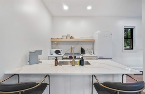 The U Haus is a brand-new modern cabin built in 2025, perfect for couples. Tucked in the woods of Hocking Hills, it's close to all major attractions. Enjoy a private hot tub, full kitchen, floor-to-ceiling windows, a king bed, deck, grill, and free WiFi. Guests must be 21+ to book. AWD/4WD recommended.