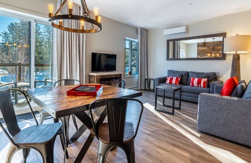 The Viking Resort & Marina is a new resort located in Ste-Marguerite-du-Lac-Masson in the magnificent Laurentians region. A unique and upscale destination, The Viking Resort & Marina offers the amenities of a resort with the comforts, conveniences and peace of mind of a cottage. With more than 40 units, our condos are all unique, original and fully furnished. The Viking Resort & Marina also includes a gourmet restaurant, a marina, a training room, a wellness center and a terrace equipped with a spa, with an exceptional view of the lake and several other services.