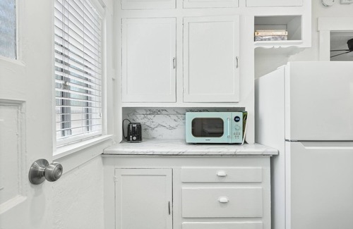 Whether you're in town for a few nights or a few months, this comfortable one bedroom home is the perfect place to call home! Free Wifi, Smart TV, fully equipped kitchen, and relaxing from porch, the home has everything you'll need to settle in. The bedroom features a King size bed with plenty of space for your suitcase and belongings. We welcome traveling professionals, contracted employees, and other mid-to-long term stays. Walking distance to Kaweah Health, this is the perfect location for traveling nurses, doctors, or those in town to be near loved ones in the hospital. Ask us about our mid-term-stay special rates! The home half of a duplex, and shares a wall with another unit, but currently there is no tenant in that unit.