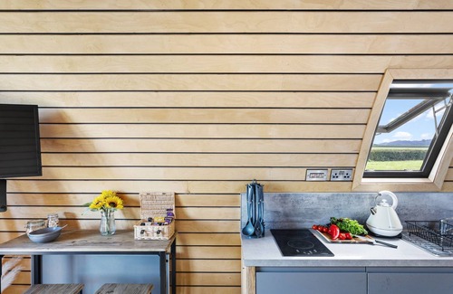 Set within a meadow on a privately-operated working farm, this luxury glamping pod is just a stroll from the city, offering couples a fabulously located sanctuary away from the demands of a busy schedule. Contemporary, spacious, and airy, its design blends modern luxury with rustic touches. An open plan layout integrates the dining area, living space, kitchen, and bedroom, all of which look out over the meadow and towards Wells Cathedral in the distance.