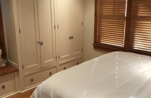 Famed artisan Michael Greenberg designed the home rustic chic (quaint yet modern). Open kitchen w/high-end appliances/gas stove, dining & family room w/queen size sofa bed. Bedroom boasts luxurious king Westin Heavenly Bed with full cable TV. Curl-up by the fireplace or enjoy outdoors. High speed Internet. Westport dine/shop/beach 10 min drive.