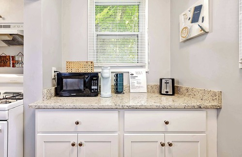 The Woodside Guest House is a beautiful two story townhome that features two bedrooms and one and a half baths. Enter the home on the first floor and find a comfortable living room complete with smart TV for your streaming pleasure. Cable is not provided, but WiFi is included and reaches all areas of the home. A separate dining room seats 4 and our coffee station includes K-cups, sweeteners and creamer. Our kitchen is stocked with all of your basic cooking needs as well as a complimentary continental breakfast bar featuring oatmeal and granola bars. Our bathrooms all include toilet paper, make up remover wipes, shampoo, conditioner and body wash. After a nice shower curl up in one of our comfortable queen sized beds with fresh linens for a good night's sleep.