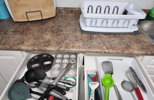 Spacious enough for 6 guest, living and dining with open kitchen and appropriate bunk-bed for all size of family members. masterbedroom is set with queen bed and a working desk with great comfortable Accent Chair with addition desk chair! choose your way! kitchen has ample storage space!