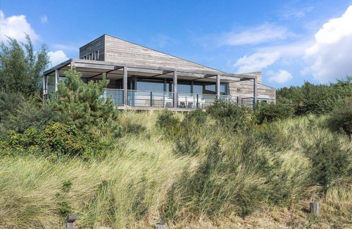 Thanks to its unique position in the first row and extra-wide terrace, the villa offers spectacular views of the beach, bay, and dunes—visible from both inside and out. You can walk directly onto the beach, no detours, no crowds. Floor-to-ceiling windows bring nature indoors, allowing you to enjoy the landscape from the living room, dining area, or even the kitchen. The terrace is equipped with glass wind protection, multiple seating areas, and terrace heaters—perfect for long meals, tranquil mornings, or a glass of wine at sunset, protected from the breeze.