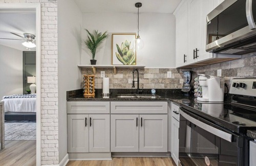 - Unwind in our spacious 1/1, with a pillowtop queen bed