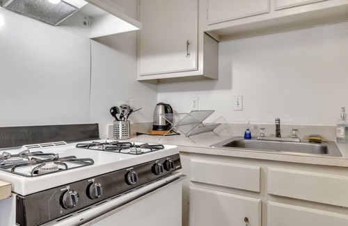 Unwind in your private haven! The serene bedroom features a comfy queen bed, nightstands for late-night reads, and a dedicated workspace for productivity. Prepare delicious meals in the well-equipped kitchen, then gather in the inviting living area with plush seating, a coffee table, and a wall-mounted TV for movie nights. Freshen up in the sparkling full bathroom with a tub/shower combo. Enjoy a hassle-free stay with everything you need at your fingertips!