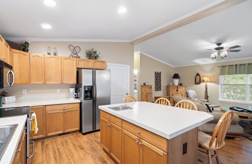 Blue Ridge Bungalow is positioned on the southern end of Linville Land Harbor and just west of Land Harbor Lake. It has a master bedroom with queen bed and a master bath accessed via the bedroom, a second bedroom with a queen bed and second bath in the hall. The kitchen, dining, & living room are all open floor plan and a great place to relax and read a book. The bungalow has high speed internet with cable television. The deck is where we spend most of our time and you will often get a wave from others in the community as they go for afternoon and evening walks.