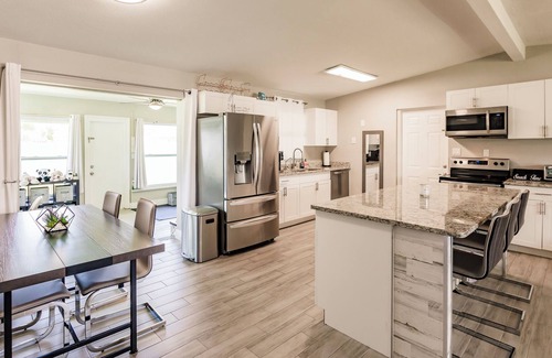 This stay is in the heart of sunny Fort Myers, placing you perfectly close to everything! The house is fit for long or short-term guests. The home has a fully fenced-in backyard, accommodations for kids and pets, storage space, parking for large vehicles and the like, a fire pit, grill, and an in-home gym. Just 5 to 10 minutes from Gulf Coast Hospital, shopping, dining, entertainment, and a short drive to the local beaches and airport. Our goal is an exceptional stay.