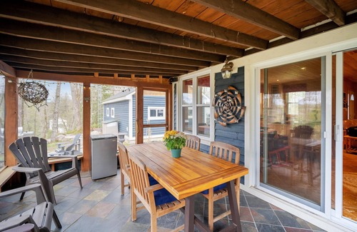 A true cottage feel, Rossarden interior features warm wood panelling and a large bright, spacious open concept living/dining area. The kitchen comes equipped with updated appliances, including dishwasher, washer/dryer as well as a kitchen island with stool seating for 2. The dining table is situated in the kitchen and offers 6-8 person seating for those comfy cottage meals. Additional table seating is located in the screened in Muskoka Room which is accessible from the kitchen area. Many hours will be spent dining and/or playing boardgames in this bug free airy outdoor living space. A large propane BBQ is easily accessible for grilling just outside of the kitchen area.