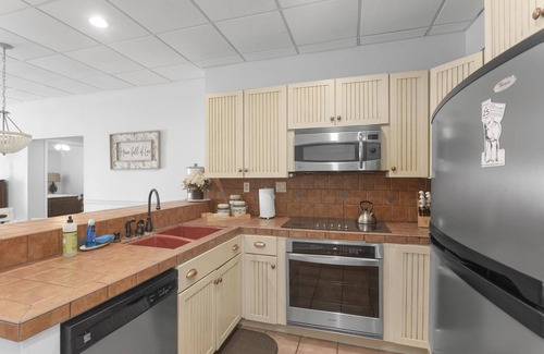 Your kitchen comes fully stocked with stainless steel appliances, including a dishwasher, oven, stove and a full size fridge. Toes in the Sand also comes with a large convection microwave oven that quickly cooks a full size pizza, lasagna or casserole for the nights you want to eat in.