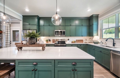 Picturesque farmhouse with three king bedrooms, game room, pool table, hot tub. Large flat screen tv's in all bedrooms and main areas. Private fireplace in backyard. Gas grill/smoker. Fully stocked coffee and tea bar