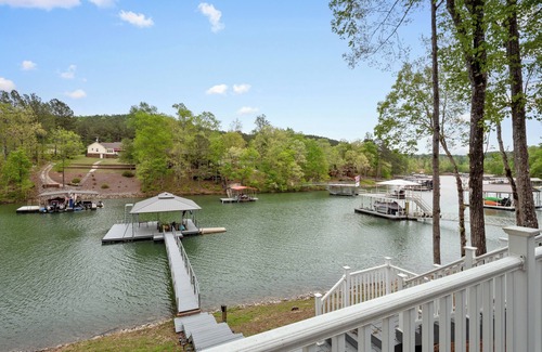 Two story dock with swim deck. Approximately 35 steps to the dock. Plenty of seating and covered area, plus a jump platform and lily pad! The lake is very deep and clear and typically 35-50 feet deep off the dock. Yearround water. Boat slip is not available to guest's use. There is plenty of room to tie up to the dock.