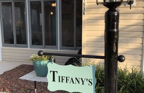TIFFANY'S is a pocket of peace, with a New York twist. Positioned between Sumter Landing and Spanish Springs, TIFFANY's boasts one of the best locations in The Villages. This Patio Villa is equipped with Internet, wall mounted televisions, an adjustable queen size bed , fireplace, a recliner, private backyard, patio and bbq grill. The lanai is screened in and temperature controlled, great for reading or taking an afternoon nap! All new furnishings, an elect EZ-GO golf cart, and all the amenities to make every stay memorable. Come enjoy the barely music as you are just a short golf cart away from Spanish Springs and Sumter Landing. Close to swimming pools, golf courses, theaters, shopping and dining! The home is on a quiet street and the neighborhood is very friendly. The owners of this property live in the neighborhood and are happy to assist visitors with any questions that might come up.