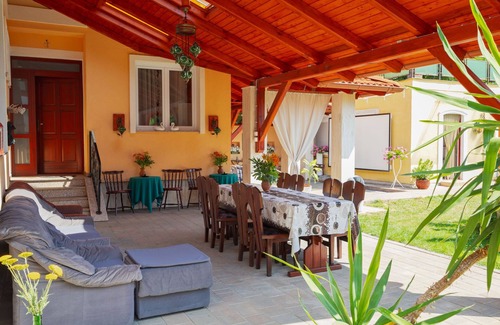 Balatonberény 15 km from Keszthely: Large 3-family house, 2 storeys. In the resort, 600 m from the lake, 600 m from the beach. For shared use: property 2'900 m2 (fenced), garden lawn and trees. Patio, barbecue, fireplace. In the house: WiFi, washing machine (extra). Grocery 300 m, restaurant 200 m, grass beach 400 m, nudist beach 600 m. Cycle lane 100 m. Well-known lakes can easily be reached: Thermal Hévíz 18 km. Please note: the owner lives on the same property.