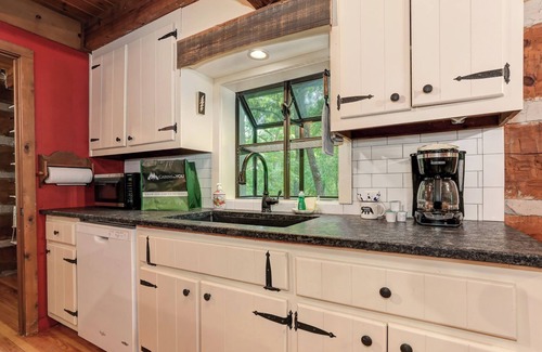 Read a book on the front porch as you sip coffee in the morning, cozy up in front of the fireplace and flatscreen TV, and easily whip up meals in the fully equipped kitchen. Toss burgers on the grill and have a picnic at the picnic table or gather around the dining table inside for nice meals.