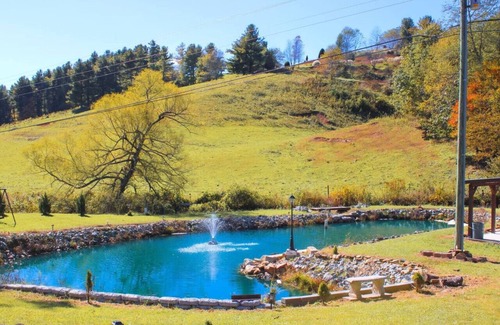 Enjoy beautiful views of mountains and a pond in Smokey's Cabin!