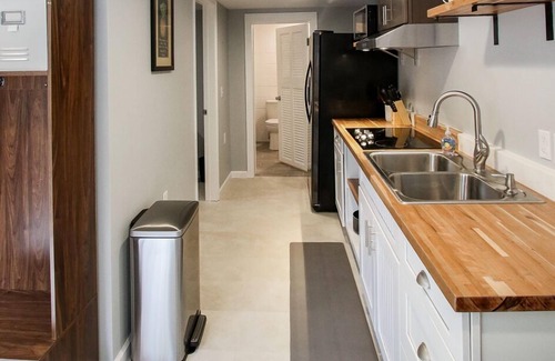 A washer & dryer is available. Please note that it is shared with guests in the other home on the property. We are pet-friendly, but we acknowledge that our Tiny Apartment is only big enough for dogs or cats under 30 lbs.
