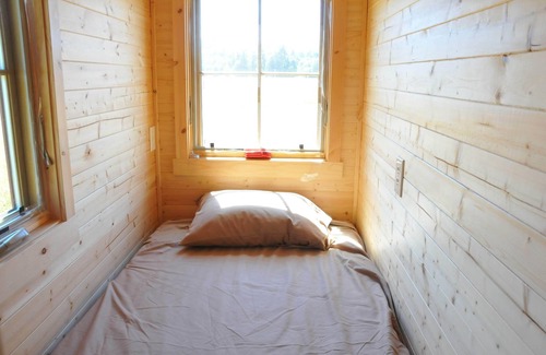 Welcome to your private, stand alone farmhouse cottage! The space is a certified 27 foot tiny home built in 2016 with cozy cork flooring and cedar interior. Furnishings and appliances are new with the home. The kitchen is fully stocked with an induction stovetop and there is a roomy fridge, microwave and toaster oven. Nearby outside bistro seating area has table and chairs as well as 2 adirondack chairs, and is complete with a full sized gas fired grill. A communal 40x10 deck is mostly covered with patio furniture. On warm days, our 30x30 4.5 foot deep organic swimming pond is a great place to cool off. There is also a seating area around the firepit, perfect for roasting marshmallows!