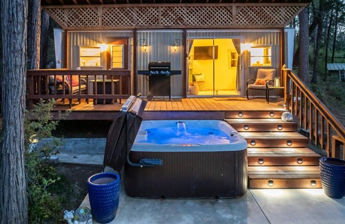 Tiny home with spa/firepit/and more! is located in Oakhurst. Tiny home with spa/firepit/and more! provides accommodation, featuring Kitchen, Balcony/Terrace, Security/Safety, among other amenities. This House features Kitchen, Balcony/Terrace, Security/Safety, to make your stay a comfortable one.