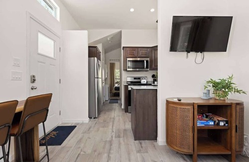 Guests have access to the entire tiny home, WiFi, fresh towels and linens, Smart TV, and flat parking. There is river access from the home. Guests share a driveway with another house on the property, which is a separate vacation rental. If you'd like to rent that home as well, please let us know.