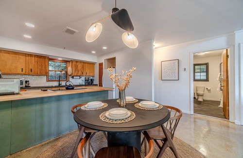 An open floorplan kitchen, dining and livingroom are spacious and inviting with comfortable finishings to enjoy every moment together. You kitchen is fully stocked for all your cooking needs including an outdoor charcoal grill for enjoying fresh prepared foods from our local grocery store Betty's Country Store in Helen (Great meat and fresh veggies). A queen bedroom on the main floor has easy access to the main floor kitchen and living room. Your second bedroom and bath are upstairs in the loft where you have beautiful skylights for stargazing in bed or you can shut them closed for sleeping in the mornings! Off the main floor living room you have an office space for working from home or school work as needed.