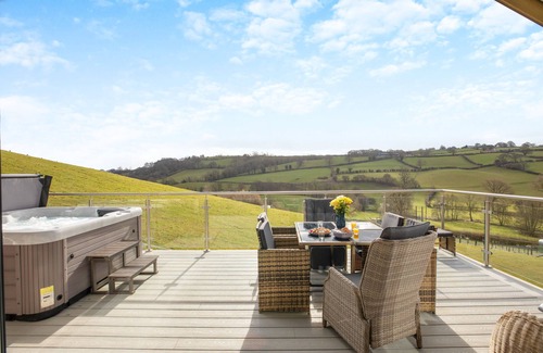 Embrace the views and relax in the hot tub on the enclosed decked terrace. Light the charcoal BBQ and spend balmy evenings gathered around the table and chairs. Guests are welcome to explore the 2.5 acres of shared grounds. Parking is available for two vehicles, featuring a convenient EV charging station.