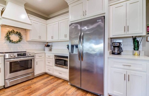 The kitchen is fully stocked with all the basics, plus some extras like a blender, crockpot, and Instant Pot for easy vacation meals.