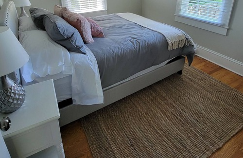 Newly renovated 2 bedroom/1 bath in downtown Morganton with all of the comforts. Full size kitchen with brand new appliances- dishwasher, range/oven, microwave, and extra capacity washer/dryer. Serta mattresses with natural organic toppers- queen size in bedroom 1 and full size in bedroom 2. Soaking tub with 2 robes provided. 55" Samsung smart tv with sound bar in living room. Private fenced in back yard area with picnic table. Parking for one vehicle in the garage and additional parking on street if needed. This is very private as it is a one unit building. There are many great places to eat and drink within blocks.
