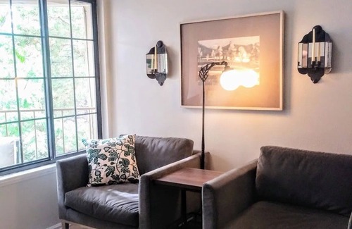 Modern, updated, top-floor condo along Cherry Creek. Cathedral ceilings, quartz countertops and modern furnishings make this home feel cozy and spacious at the same time. Close to the best shopping, culture, and nightlife in the Denver metro area and the exclusive Cherry Creek neighborhood.