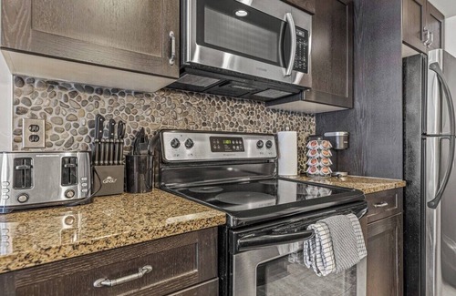 Full Kitchen, Laundry, heated parking, private patio, WiFi plus the Hot Tub, Firepit and communal BBQ area.