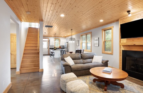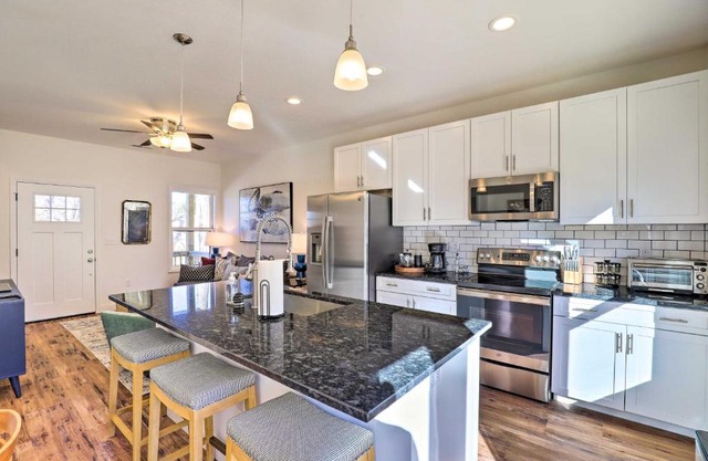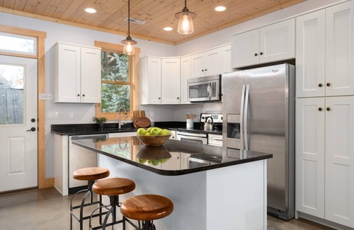 As of January 2025 we have 274, 5-star reviews out of 276 total!!! There is a reason :) This 2,000 sq. ft. home, built by the owners in 2016, is very private yet close to it all. The common areas are spacious and open . . . ideal for sharing time together and relaxing. The living room has very comfortable seating, a gas fireplace and TV. The wood dining table is BIG, and includes 8 chairs. The kitchen has a large island with "breakfast bar" seating, clean stainless steel appliances and white cabinets filled with a wide range of cooking supplies, utensils, etc.. We outfitted the bedrooms with super comfortable mattresses and soft cotton and micro-fiber sheets, along with quality dressers and nightstands. The bathrooms, with granite vanity countertops, stay sparkling clean! We created a "hang-out" room in the upper level (with 50" flat screen TV). For your outdoor time we fenced in the back yard where we have a patio, table and chairs, gas grill and a beautiful fire pit surrounded by boulders and landscaping. It's just one of those places that feels good both inside and out, and we'd love you stay with us!