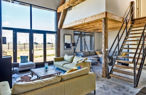 Het linker deel van de schuur (Beach Barn) is met recht een exclusieve moderne vakantiewoning te noemen. Achter de oude mannendeuren zit een prachtige glazen pui verborgen. Hierdoor heeft u vanuit de ruime woonkamer een prachtig uitzicht over het prachtige Zeeuwse landschap. Deze woonkamer heeft verschillende zithoeken: rondom de houtkachel en bij de televisie of 'gewoon' om te chillen.