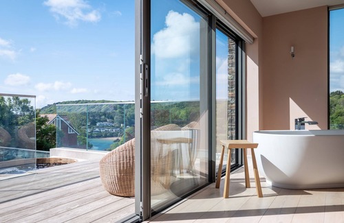 The house is seriously impressive with its sweeping sunny terraces, sun loungers and hot tub giving it a very Mediterranean feel. The sea twinkles in the distance, and South Sands beach peeks out as the tide ebbs away. Al fresco dining will be the order of the day with the generous dining area and gas BBQ which doubles as a small pizza oven.