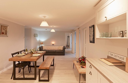 The living areas in this holiday home consist of an open-plan living space with kitchen equipped with electric oven, convection hob, microwave, fridge/freezer and dishwasher, dining area with seating for four and sitting area with Smart TV, there is also a utility with washer/dryer and a communal games room. The bedrooms consist of a super-king-size (zip/link, can be twin on request) and king-size serviced by a shower room. Outside there is off-road parking for two cars, a rear, enclosed garden with patio, lawn and hot tub and communal access to on-site children's play area, outdoor heated pool and dog exercise area. Within 1.7 miles there is a shop and 1 mile a pub. One well-behaved dog welcome, but sorry, no smoking. WiFi, fuel, power, bed linen and towels are all included in the price. A travel cot, highchair and stairgate are available. Explore Devon at Tor Cottage. Please note: the swimming pool is only open between 01st April - 30th September. Please note: This property is unable to accept 1 night stays