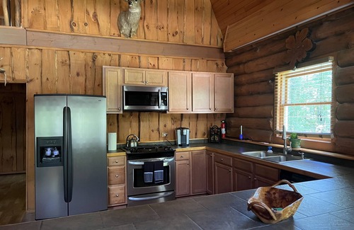 Come and enjoy 5 acres of peace and quiet in this handcrafted log home located in the middle of the woods. Inside you will find a relaxing wood burning fireplace, an elegant kitchen, 3 bedrooms along with a side room in the basement, and 3 bathrooms. Step outside and enjoy the view on 3 large decks, if you sit quietly you may see the deer and wild turkey come for a visit. In the evening warm up by an outdoor bonfire where s'mores and other food may be cooked. Located less than a mile away is Abby resort,Gordy’s, and Chucks. Nice golf courses are located only 5 miles away in Delevan. Fontana beach is only 0.8 miles away. Boat, jet-ski rental, and public boat launch is available.The town lake Geneva is 15 minutes away! This home is not only for summer use, during the winter ski resorts are very close. Alpine valley is only 25 minutes away!