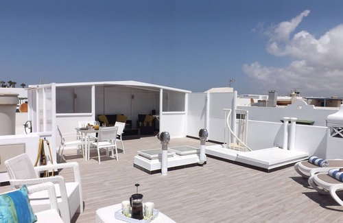 Enjoying excellent sea and mountain views, the apartment roof terrace (accessed via a narrow spiral stair case) is great for dining alfresco or relaxing in the Playa Blanca sunshine. There is a kitchenette and dining area on the terrace, as well as sun loungers.