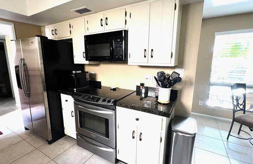 TOWNHOUSE: 2 bedrooms, 2 bathroom with accessible showers. Fully furnished with meet your every need: dishes, platters, linens, soaps, paper products and basic pantry items. Keurig with complimentary pods and sweeteners to get your first cup of coffee before you settle in.