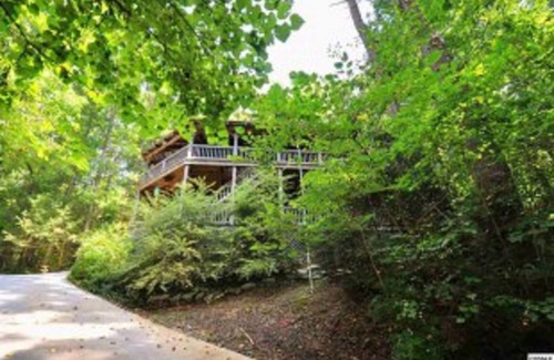 Located on the "Peaceful Side of the Smokies," this home has an open floor plan; spacious living areas and fully equipped kitchen, full bathroom and laundry on main level. There are 2 bedrooms, one on the upper floor and one on the lower floor with private entrance, each with full baths. There is a loft and screen porch that offer additional sleeping options. There are televisions in main living area, both bedrooms, and loft; cable and wireless internet. There are large wrap around decks on two levels; outdoor grill and hot tub on upper level; beautiful woods and mountain views. There is a picnic area with campfire pit, and short trails throughout this 2 acre property. Outdoor security for your safety (indoor security nonfunctional during your stay).