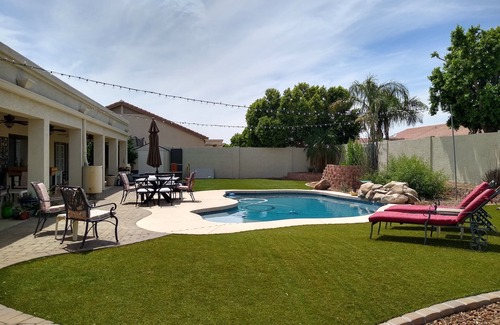 Relaxing space with private pool. Area amenities include hiking, biking trails, Lake Pleasant, Sedona, and of course, the Grand Canyon. Plenty of restaurants in Glendale to enjoy a night out, or delivery if that's your thing.