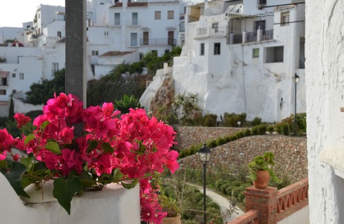 Beautiful house, with several centuries old, located in the heart of the Moorish village of Frigiliana with individual character and great views. Located in a quiet pedestrian street, just meters from the main street. With original Moorish arches, thick stone walls, whitewashed and wood-beamed ceilings and it has been restored with all modern amenities. It has three levels with panoramic countryside and sea visible from almost every room and especially from its two terraces. It has two bedrooms, one with double 1.50 × 2.00 m. (Queen size) and air conditioning, and one with two single beds of 0. 90 × 2.00 m. In addition to the living area on the ground floor, a few steps lead to a living room with a special atmosphere with a wood stove. One of the terraces has tables and chairs under the shadow of hurdle and a spectacular bougainvillea. The other has loungers for sunbathing. The house also has the right to use a nice pool located a couple of minutes and is accessed by crossing a nice little botanic garden. The pool is open from 1 April to 30 October.