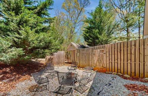 Step outside and breathe in the fresh mountain air from one of three inviting porches. Whether you’re sipping coffee on the screened-in porch, enjoying dinner al fresco, or winding down around the propane fire pit in the backyard, you’ll appreciate the tranquility of your surroundings. The front yard features a wood fire pit, perfect for stargazing on clear nights.