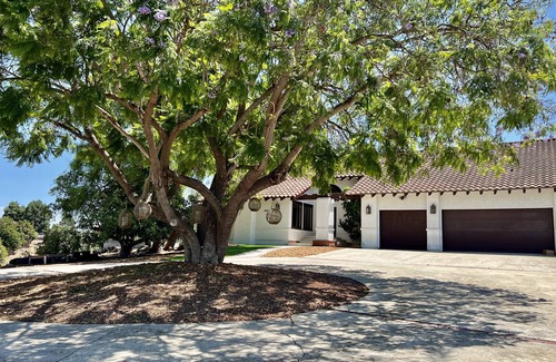 Escape the hustle & bustle of the city to a private luxury villa on 2.5 acres of avocado groves conveniently located 1 hour from LA & Santa Barbara. This 4BR, 3,500 sq ft retreat sleeps 8+ and features a resort-style pool, hot tub, 150" projector, chef’s kitchen, and brand-new professionally designed Pickleball court. Enjoy two stylish living areas, two dining spaces, and serene patios. SoCal is calling—we can't wait to welcome you!