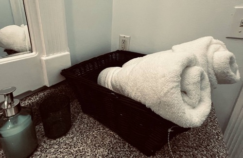 Our minimalist washroom is equipped with shampoo / body wash, towels, and toilet rolls for your use. The full bathtub is perfect for a romantic soak with your loved one.