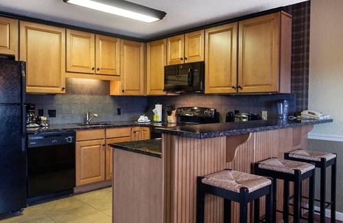 Resort suites feature all the comforts of home, including fully-equipped kitchens, spacious living and dining areas, full baths and plenty of room to relax. Select units even have even inviting fireplaces. Step out onto the balcony or porch and take in sweeping views of lush forested mountainsides, then cozy up with the kids on a comfortable couch and catch a movie on a large, flat-screen TV.