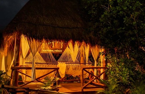 Our property is an exotic and intimate eco-chic cabin, which combines the jungle adventure of the mangrove with the peaceful tranquility of Punta Cocos. It is located 3 minutes from the beautiful beaches and bioluminescence. You will relax in its romantic palapa with Yucatecan hammocks, ideal for some dream photos! Our cabin has a fully equipped kitchen, satellite Internet, balcony, desk and large terrace designed for those who seek privacy and enjoy the rustic and artisanal style.