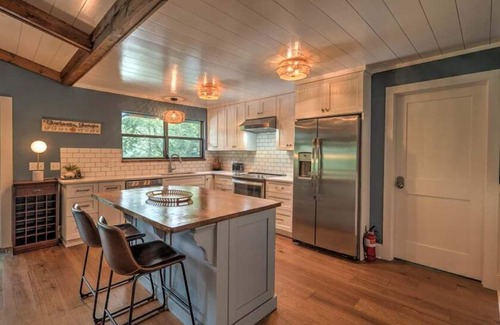 Kitchen - fully equipped main level kitchen, stainless steel appliances, custom cabinets, quartz countertops, breakfast bar seats 2, kitchen utensils, microwave, crockpot, blender, toaster, drip coffeemaker (bring basket filters), Keurig