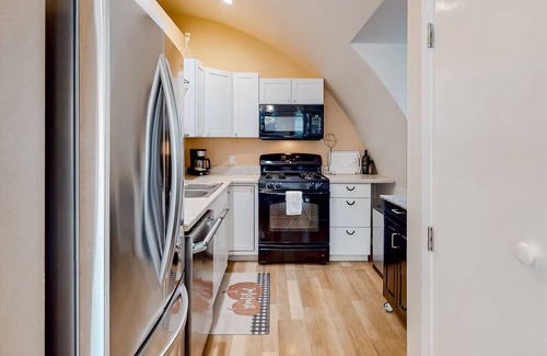 Inside, the open-concept living room, dining room, and kitchen blend in perfect harmony. Here, you can dine, cook, relax, and visit with those who mean the most to you. Both bedrooms are comfortable and quiet, with high-quality linens and simple, calming decor. A private washer/dryer, WiFi, and a smart TV round out the interior perks.
