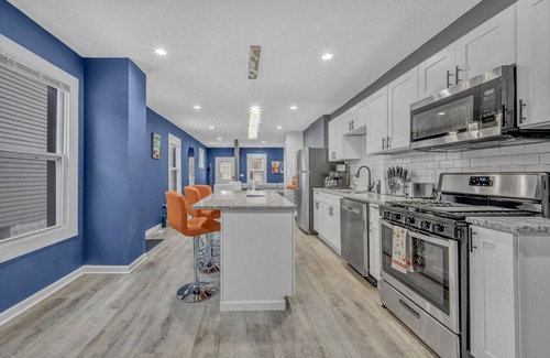 Welcome to Tremont Jewel, a stunning, contemporary 3-bedroom, 1.5-bath home in the heart of Tremont, Cleveland. Designed with elegance and style, this beautifully staged home features vibrant colors, modern décor, and upscale touches—making it the perfect retreat for corporate stays, girls' night out, bachelorette parties, friends' get-togethers, or family gatherings. With 7 beds, this spacious home comfortably accommodates 14-16 guests, offering the perfect blend of luxury, comfort, and convenience.
